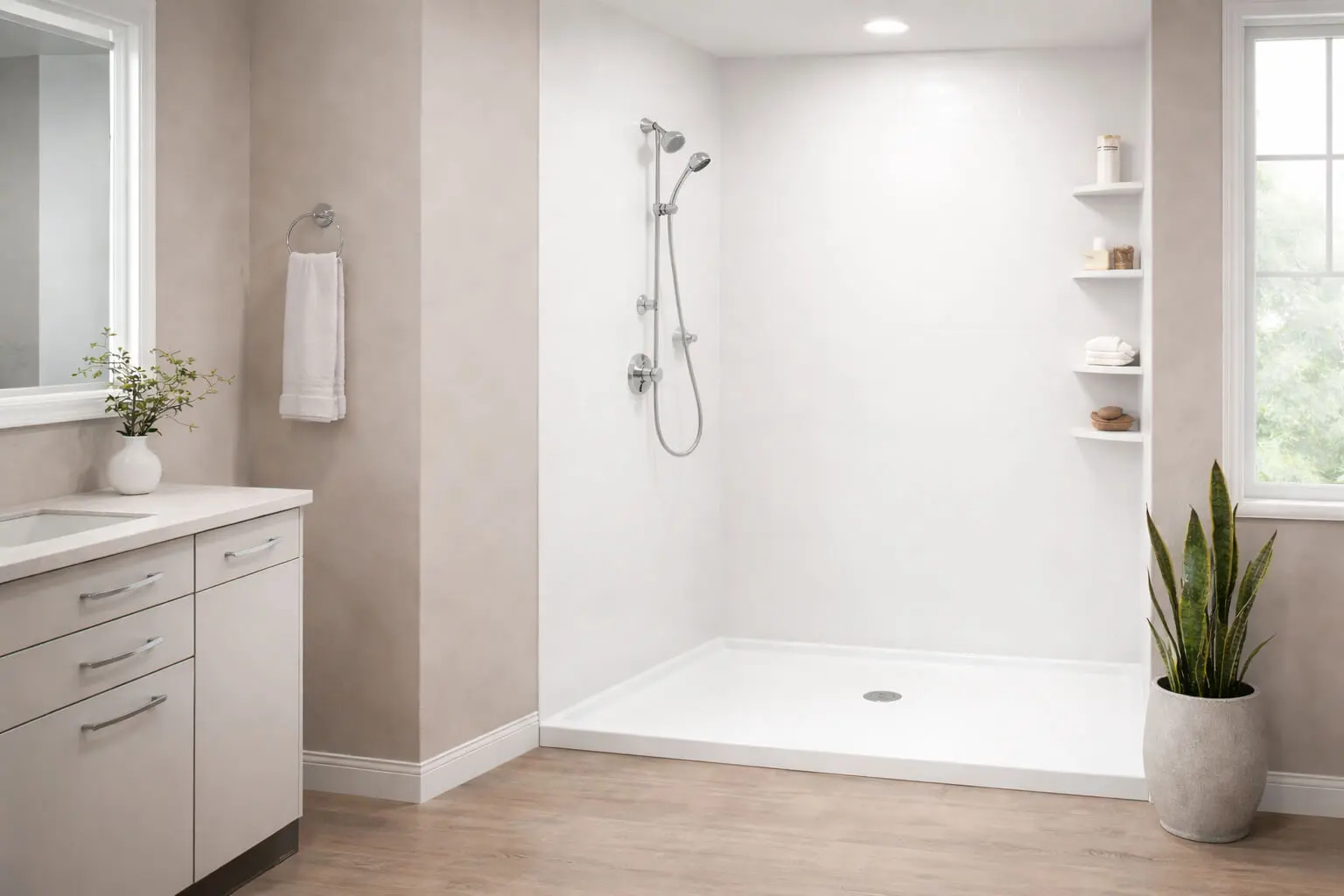 A shower replacement involves removing your existing shower and installing a new acrylic shower system in its place. This includes new wall panels, base, fixtures, and accessories. Shower replacement is ideal for homeowners who want a fresh look without a full bathroom remodel.